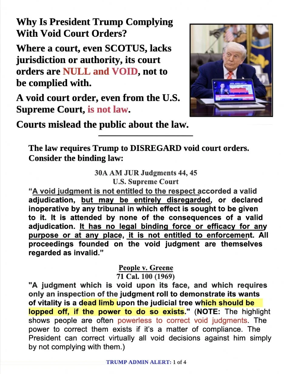 ALERTS Sent to Members of President Trump’s Cabinet and Staff May Be Downloaded From This Page.Double-click on document for MENU window. ALERT #1“Why Is President Trump Complying With VOID Court Orders?” ALERT #2“Woke Judges Are Complicit with Democrat Leadership to Make U.S. Totally Lawless”